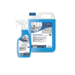 Detergente pulibagno non acido” per la pulizia di rubinetterie, sanitari e pareti piastrellate. Elimina efficacemente velature di calcare, sporco di unto e grasso cosmetico. Privo di acidi e cloro, è indispensabile per la pulizia di marmi, granito, superfici smaltate e cromate. Il prodotto agisce meccanicamente per la rimozione dello sporco, svolge una mera azione meccanica sugli organismi nocivi che vengono rimossi fisicamente dalla superficie trattata ed esplica in tal modo, anche, un’azione igienizzante. Lascia nell’ambiente un profumo fresco e persistente.