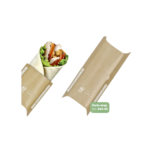 Il porta wrap in cartoncino avana è la soluzione pratica e funzionale per servire wrap, piadine, burrito e snack da asporto in modo ordinato e professionale. Grazie alla sua forma ergonomica, permette di contenere il prodotto mantenendolo stabile e facile da consumare anche in movimento.
